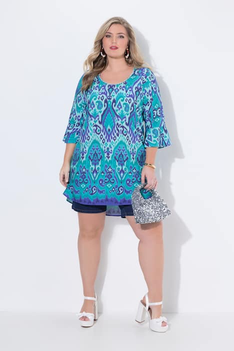 Tunika, A-Linie, Alloverdruck, 3/4-Ärmel