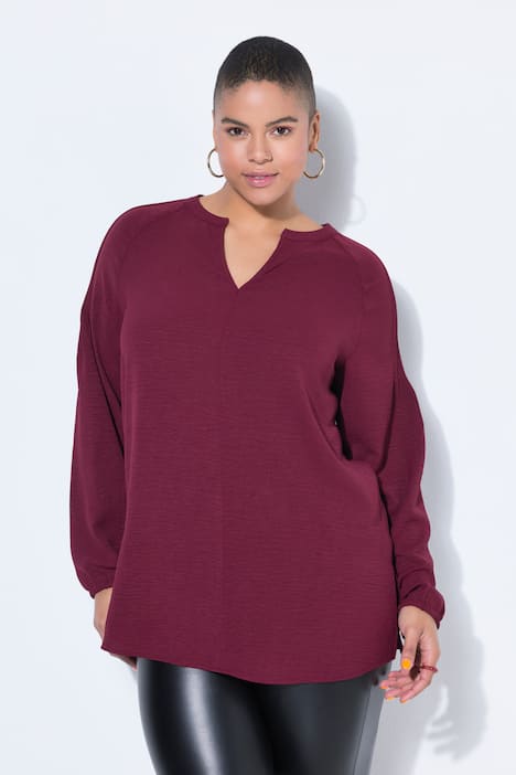 Tunika, A-Linie, aus weichem Krepp mit 3/4-Puffärmeln und Zierfalten auf den Schultern. Tunika-Ausschnitt, Raglanärmel mit elastischem Abschluss. Leicht gerundeter Saum mit Seitenschlitzen.