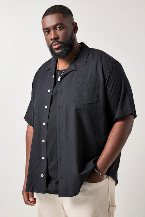 STHUGE Hemd, Halbarm, Kuba-Kragen, Struktur, kastiger Fit, bis 8 XL