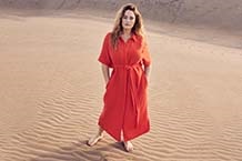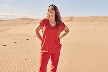 Strickhose Rose aus Biobaumwolle. Weite Marlenehose mit geradem Bein. Aus weichem Feinripp-Strick mit Elastikbund und seitlichen Einschubtaschen. 2 Gesäßtaschen. Organic; certified by ECOCERT Greenlife Licence no. 152026.