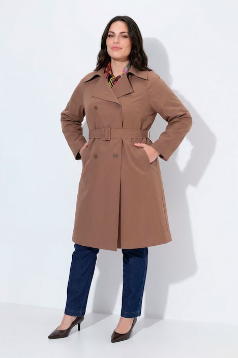 Trenchcoat, der vielseitige Klassiker mit Bindegürtel in der Taille - immer deine Wunschsilhouette. Hochwertige, leicht elastische Qualität mit großem Reverskragen und doppelreihiger Knopfleiste. 2 Einschubtaschen mit Klappe, Raglan-Langarm. Hoher Tragekomfort durch Komplettfutter.