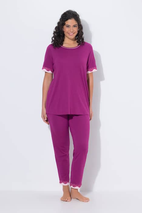 Pyjama, Spitzenkanten, Rundhals, Halbarm