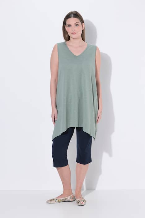 Longtop, Zipfelsaum, A-Linie, V-Ausschnitt, Biobaumwolle