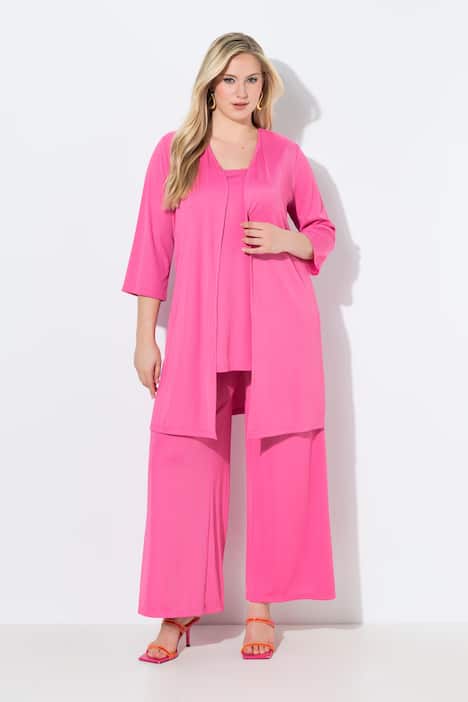 Long-Jerseyjacke aus weichem und formstabilem Rippjersey. Lange, offene Jacke mit V-Ausschnitt und Langarm. Lange Seitenschlitze für glatten Fall und perfekte Bewegungsfreiheit.