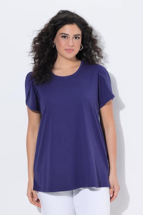 T-Shirt, A-Linie, mit drapiertem, weiten Halbarm in moderner Lagenoptik. Rundhalsausschnitt.