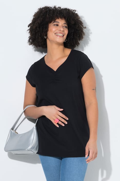 T-Shirt, bequeme Passform, Herz-Ausschnitt mit Raffung
