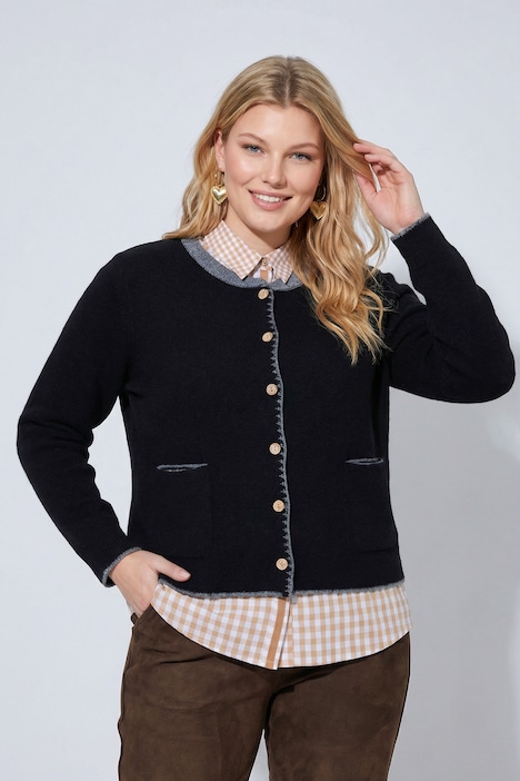 Strickjacke, Hirsch-Stickerei, Trachtenknöpfe, Stehkragen