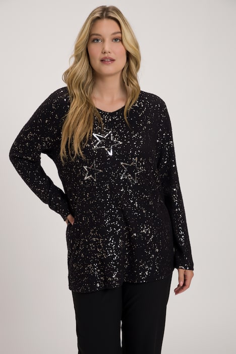 Sweatshirt, oversized, mit Pailletten Sternen und Astro-Druck. Festlich und kuschelweich mit V-Ausschnitt, überschnittenen Schultern und Langarm.