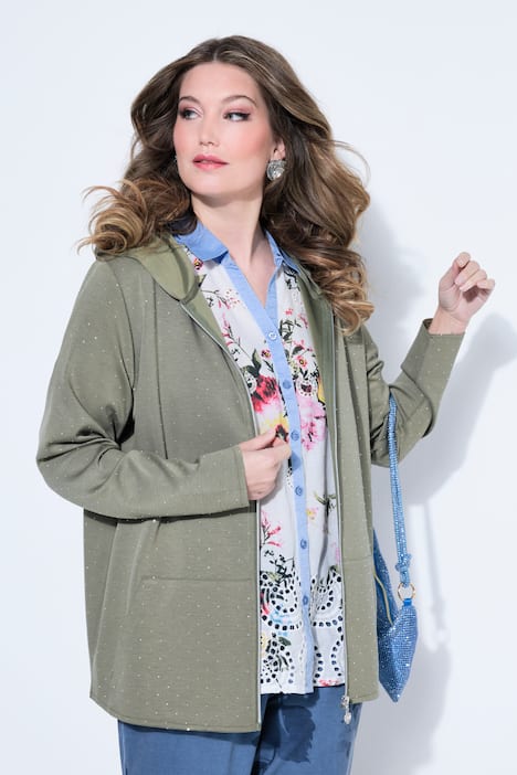 Sweatjacke, Loose Fit, aus weichem Sweat mit Glitzernieten und modischen, offenkantigen Nähten. Kapuze, Zipper, 2 Taschen. Langarm.