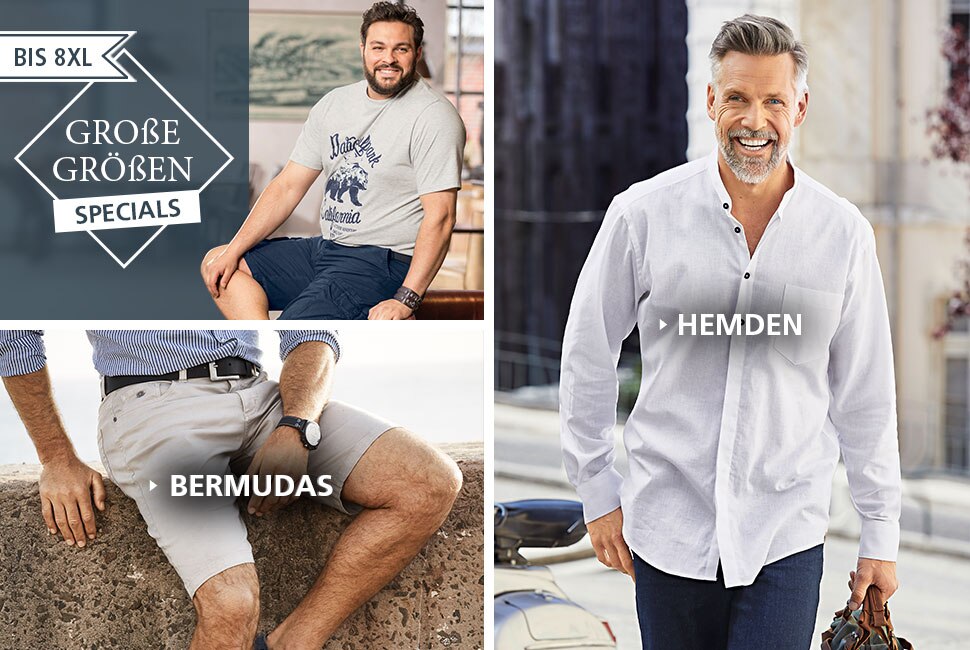 Herrenmode für Übergrößen, die Ihre Persönlichkeit unterstreicht. Von sportlicher Freizeitmode über elegante